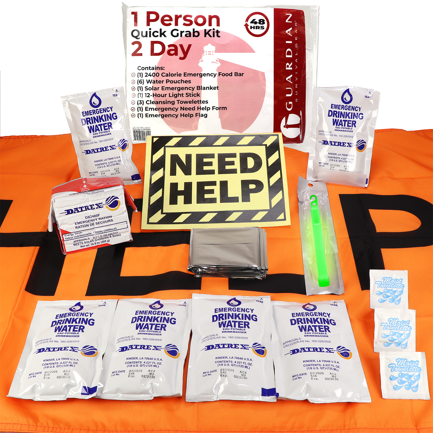 Be ready for any emergency with the 2 Day Quick Grab Kit. This lightweight, compact kit is packed with essential survival items for one person, all conveniently stored in a resealable bag for easy access and portability.