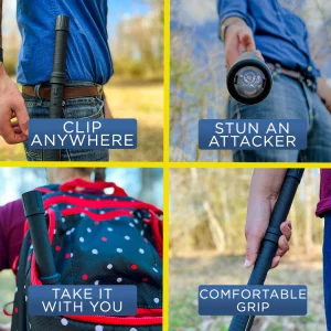 Powerful Stun Baton: Just test firing this unit into the air is often enough to stop an attacker. As the bright electric current pulsates across the top of the unit, it creates an intimidating electric sound. An attacker with any sense will be stopped in his tracks. If the sight and sound don’t stop him, a jolt from this unit will.