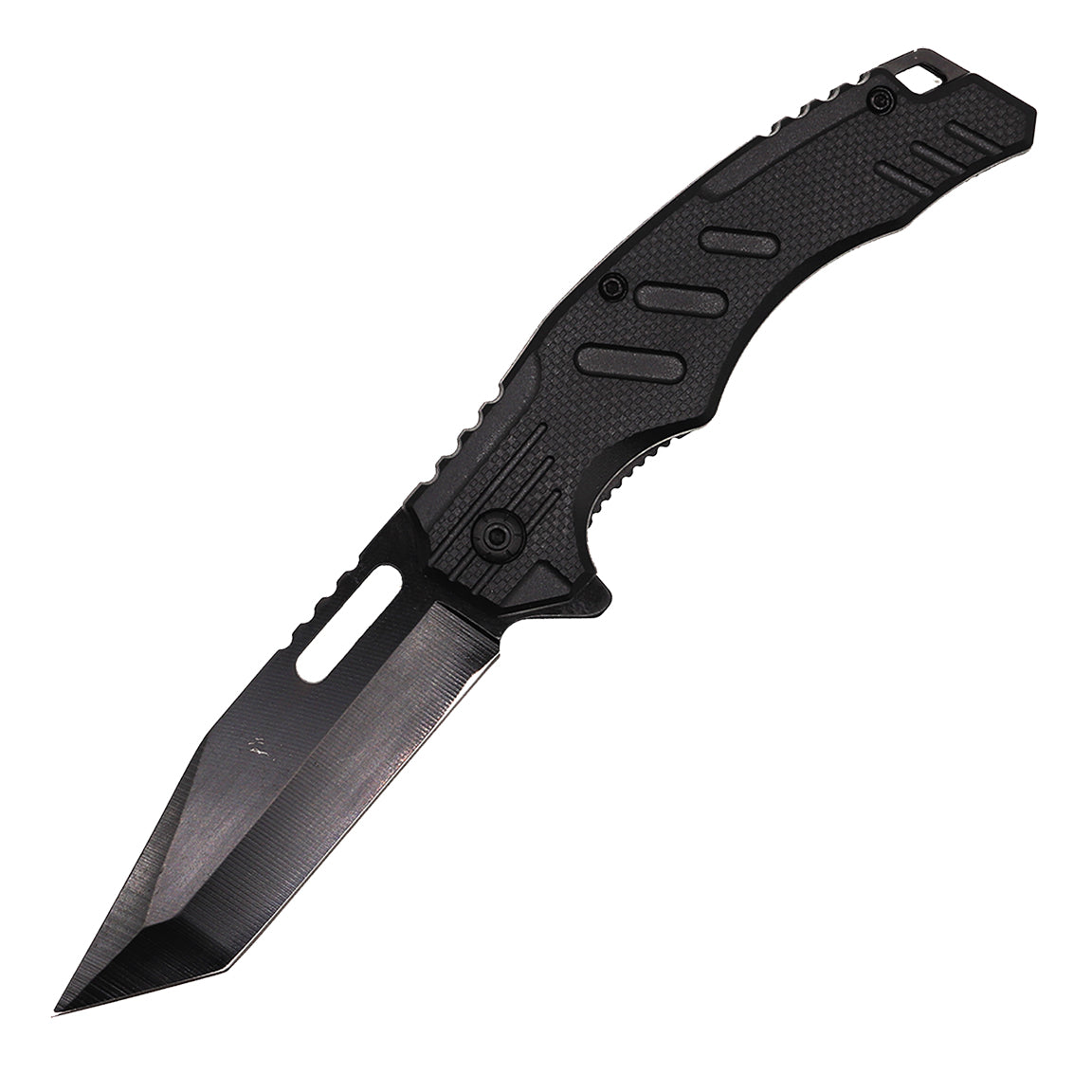 The 3.25″ stainless steel tanto blade is designed for maximum piercing power and durability, making it ideal for tactical, self-defense, or everyday cutting tasks. When closed, the knife measures 4.75″, making it compact enough for discreet carry. The black ABS handle offers a secure and comfortable grip, ensuring full control during use.