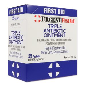 Triple Antibiotic Ointment (Contains Bacitracin Zinc, Neomycin Sulfate and Polymyxin-B Sulfate) Convenient single-use packaging in 25 count dispenser box is easy to use for fast application and instant relief. Simply apply on minor cuts, burns and scrapes.
